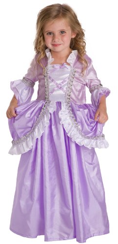 This classic Rapunzel Princess dress includes a glittered purple and white velvet bodice with beautiful silver sequin lace and purple criss cross trim, along with fancy 3/4 length sleeves. The hip draping accentuates the fullness of the skirt. All of our dresses are made from clothing quality fabrics and are designed to be affordable, comfortable, machine washable and long lasting!